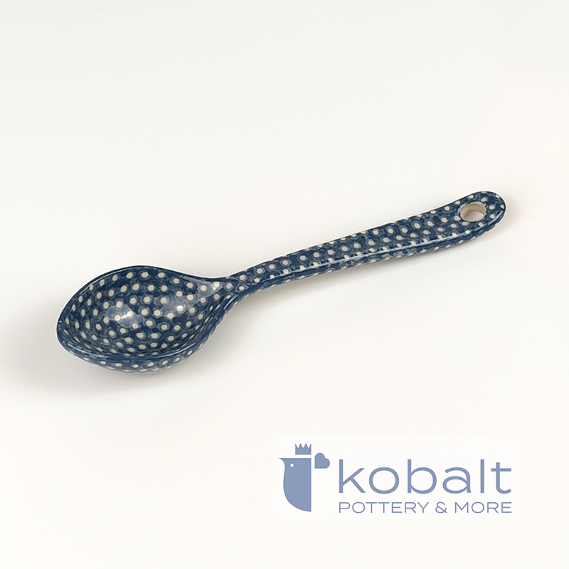 Łyżeczka w wysokiej klasy unikatowym wzorze w szaroniebieskie kropeczki