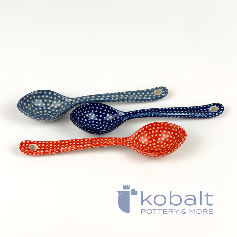 Łyżeczka w eleganckim unikatowym wzorze, zdobiona w piękne, ręcznie malowane, szaroniebieskie kropeczki. Produkt idealnie sprawdzi się do deserów i lodów. Ten unikatowy wzór będzie się pięknie komponować zarówno w rustykalnych jak i minimalistycznych, nowoczesnych wnętrzach. Łyżeczka będzie stanowiła oryginalną ozdobę każdej kuchni.