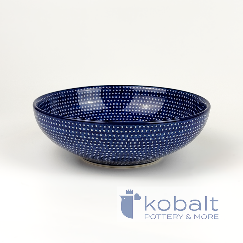 Miska zdobiona w piękne, ręcznie malowane, granatowe kropeczki. Miska idealnie sprawdzi się do podawania przekąsek. Ten unikatowy wzór będzie się pięknie komponować zarówno w rustykalnych jak i minimalistycznych, nowoczesnych wnętrzach. Miska będzie stanowiła oryginalną ozdobę każdej kuchni.