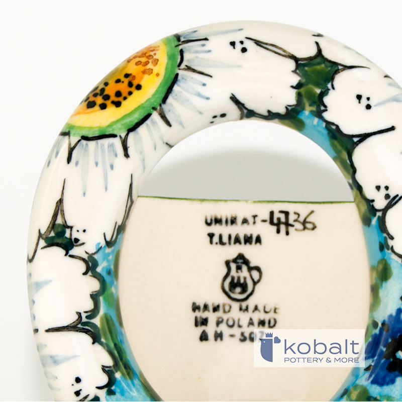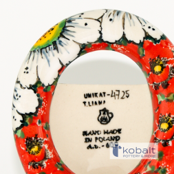 The product is manufactured by Ceramika Artystyczna in Bolesławiec, hand-made and painted. Ceramics are made using natural stoneware clays. The manufacturer uses only natural dyes. The product is intended for contact with food and has certificates obtained at the AGH University of Science and Technology in Krakow. Dishes can be heated in microwave ovens, baked in an oven and washed in dishwashers.