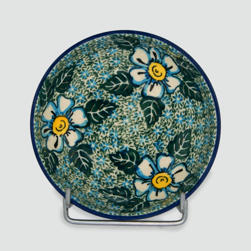 The product is manufactured by Ceramika Artystyczna in Bolesławiec, hand-made and painted. Ceramics are made using natural stoneware clays. The manufacturer uses only natural dyes. The product is intended for contact with food and has certificates obtained at the AGH University of Science and Technology in Krakow. Dishes can be heated in microwave ovens, baked in an oven and washed in dishwashers.
