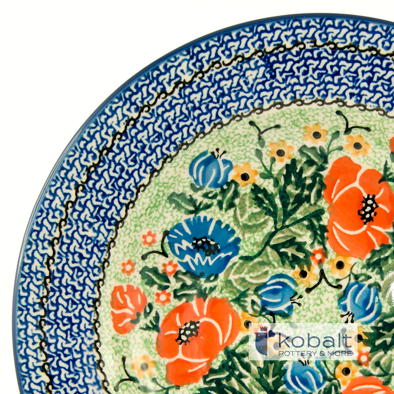 The product is manufactured by Ceramika Artystyczna in Bolesławiec, hand-made and painted. Ceramics are made using natural stoneware clays. The manufacturer uses only natural dyes. The product is intended for contact with food and has certificates obtained at the AGH University of Science and Technology in Krakow. Dishes can be heated in microwave ovens, baked in an oven and washed in dishwashers.