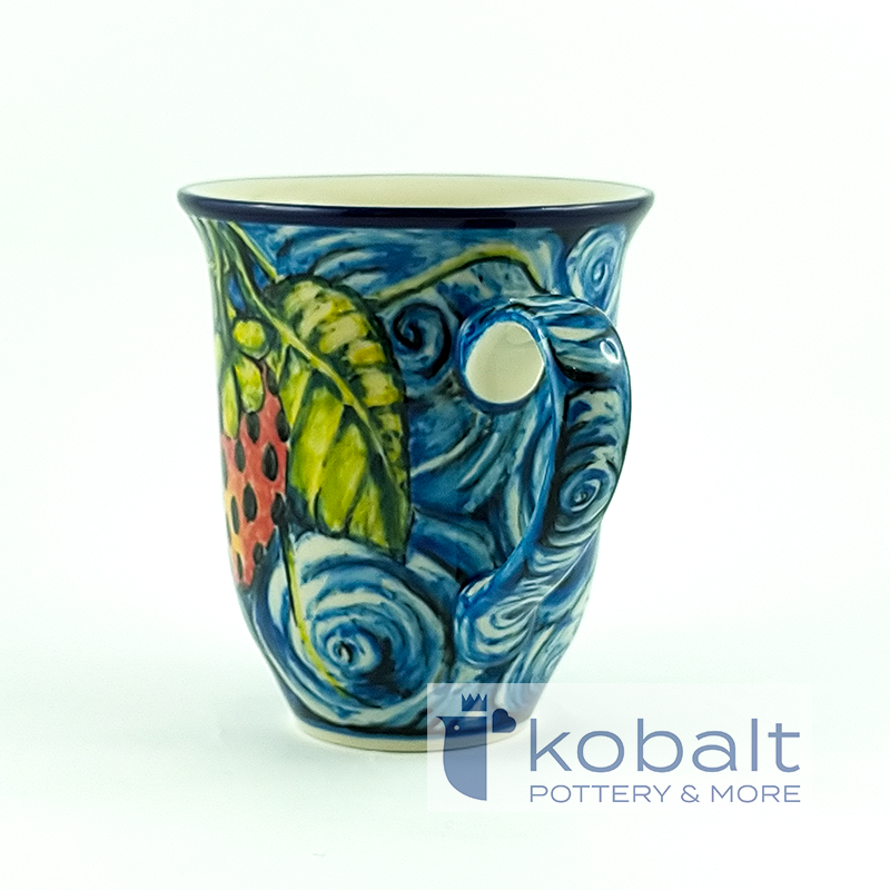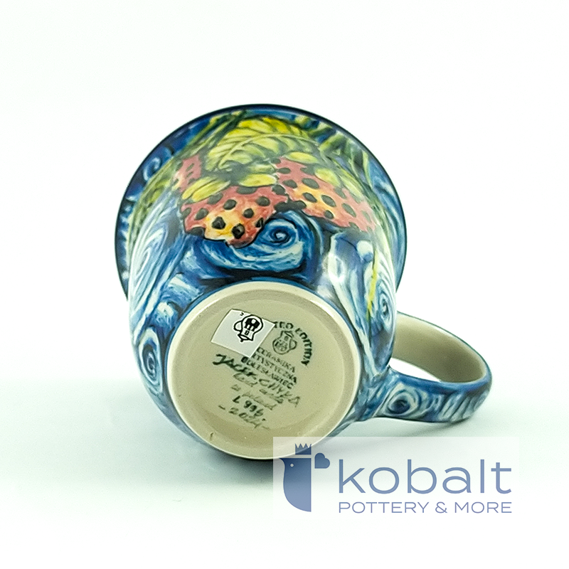 The product is manufactured by Ceramika Artystyczna in Bolesławiec, handmade and painted. This mug comes from the latest Limited Edition collection. It is a real gem for collectors, because only one such copy was made. Ceramics are made of natural stoneware clay. The manufacturer uses only natural dyes. The product is intended for contact with food and has certificates obtained at the AGH University of Science and Technology in Krakow. Dishes can be heated in the microwave, oven and washed in the dishwasher.