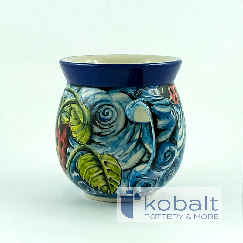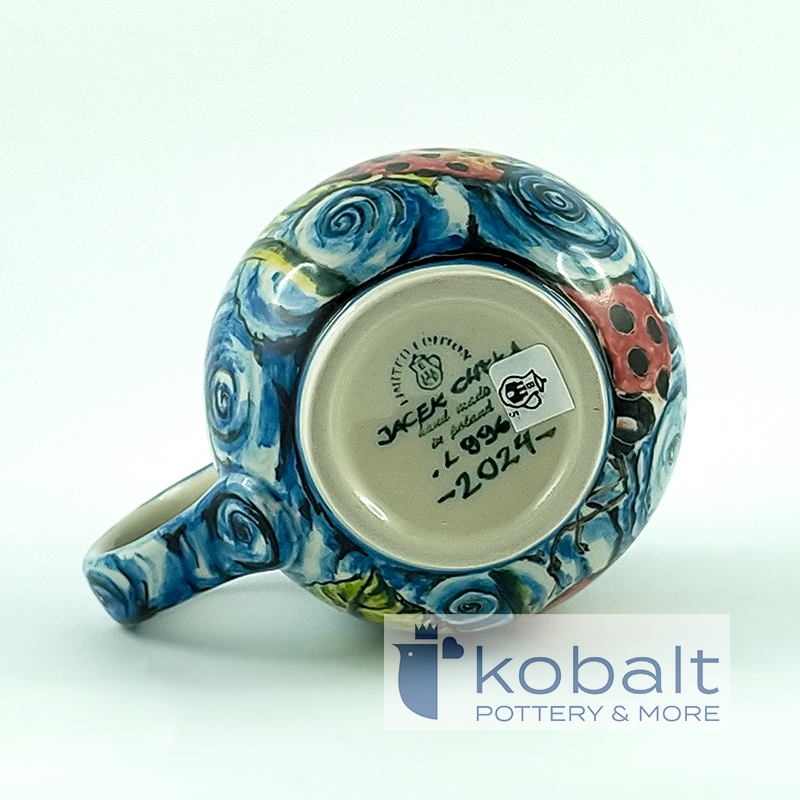 The product is manufactured by Ceramika Artystyczna in Bolesławiec, handmade and painted. This mug comes from the latest Limited Edition collection. It is a real gem for collectors, because only one such copy was made. Ceramics are made of natural stoneware clay. The manufacturer uses only natural dyes. The product is intended for contact with food and has certificates obtained at the AGH University of Science and Technology in Krakow. Dishes can be heated in the microwave, oven and washed in the dishwasher.