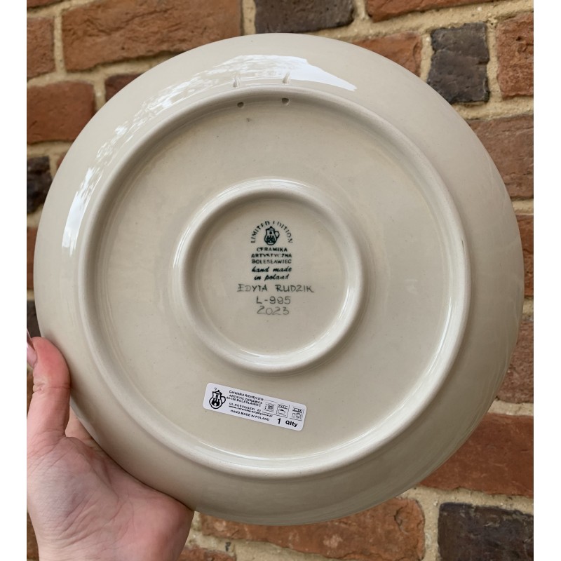 The product is manufactured by Ceramika Artystyczna in Bolesławiec, handmade and painted. This plate comes from the latest Limited Edition collection. It is a real gem for collectors, because only one such copy was made. Ceramics are made of natural stoneware clay. The manufacturer uses only natural dyes. The product is intended for contact with food and has certificates obtained at the AGH University of Science and Technology in Krakow. Dishes can be heated in the microwave, oven and washed in the dishwasher.