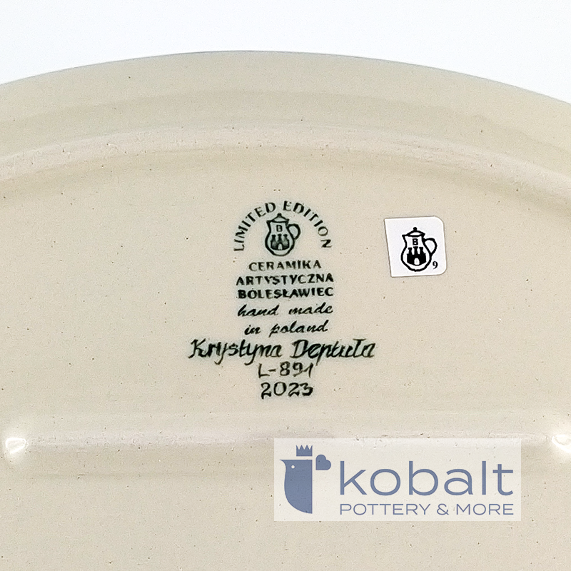 The product is manufactured by Ceramika Artystyczna in Bolesławiec, handmade and painted. This plate comes from the latest Limited Edition collection. It is a real gem for collectors, because only one such copy was made. Ceramics are made of natural stoneware clay. The manufacturer uses only natural dyes. The product is intended for contact with food and has certificates obtained at the AGH University of Science and Technology in Krakow. Dishes can be heated in the microwave, oven and washed in the dishwasher.