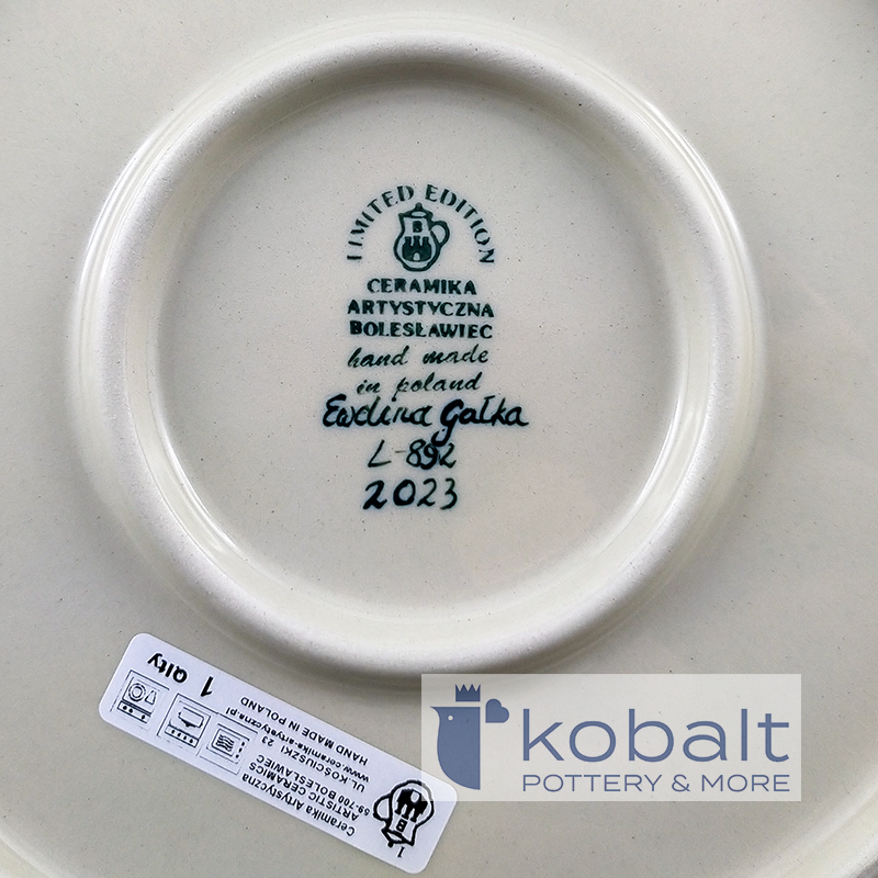 The product is manufactured by Ceramika Artystyczna in Bolesławiec, handmade and painted. This plate comes from the latest Limited Edition collection. It is a real gem for collectors, because only one such copy was made. Ceramics are made of natural stoneware clay. The manufacturer uses only natural dyes. The product is intended for contact with food and has certificates obtained at the AGH University of Science and Technology in Krakow. Dishes can be heated in the microwave, oven and washed in the dishwasher.
