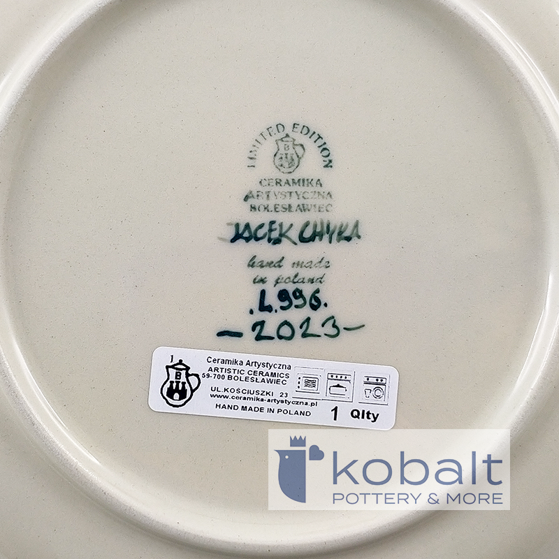 The product is manufactured by Ceramika Artystyczna in Bolesławiec, handmade and painted. This plate comes from the latest Limited Edition collection. It is a real gem for collectors, because only one such copy was made. Ceramics are made of natural stoneware clay. The manufacturer uses only natural dyes. The product is intended for contact with food and has certificates obtained at the AGH University of Science and Technology in Krakow. Dishes can be heated in the microwave, oven and washed in the dishwasher.