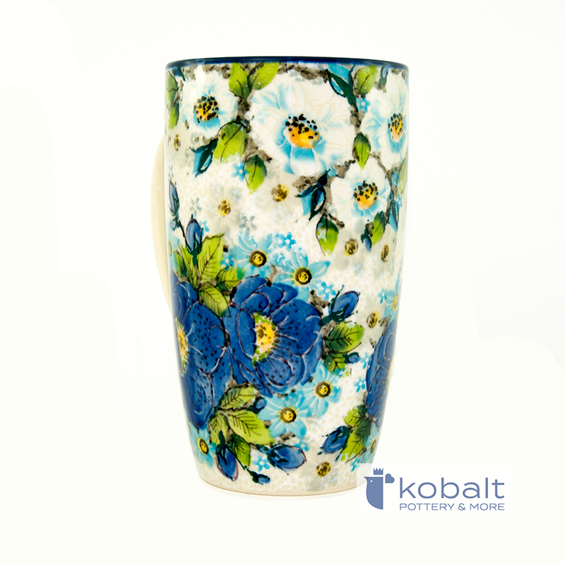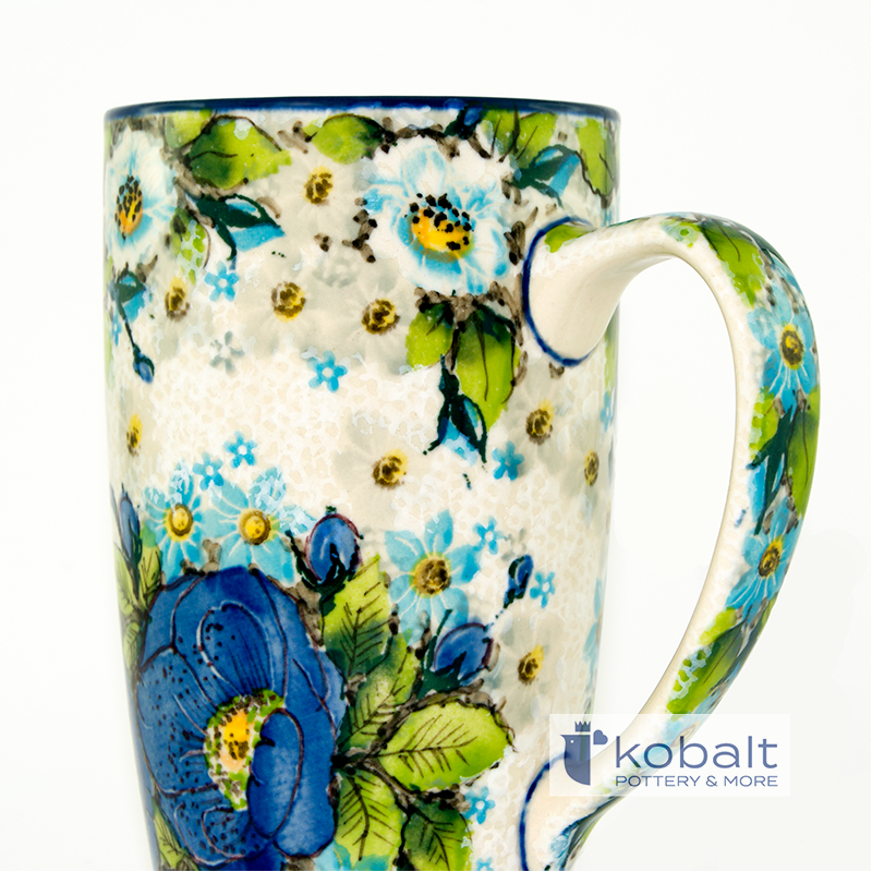 Unikatowy kubek o pojemności 400 ml z limitowanej edycji 2019 o wyjątkowym wzorze. Prawdziwa kolekcjonerska perełka zdobiona przepięknym, wiosennym motywem kwiatowym o bardzo intensywnych kolorach. Granatowy akcent na krawędziach pięknie wpisuje się w kolorystykę dekoru. Wszystkie detale zostały wykonane z ogromną precyzją. Ze względu na fakt iż każdy egzemplarz malowany jest przez artystę ręcznie, mogą występować nieznaczne różnice we wzorze. Nie zaburzają one jednak kompozycji zestawu (przy zakupie więcej niż jednej sztuki). Dobrze wyprofilowane uszko sprawia, że kubek jest niezwykle poręczny co zapewnia najwyższy komfort użytkowania.