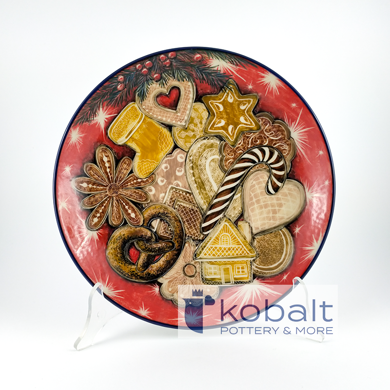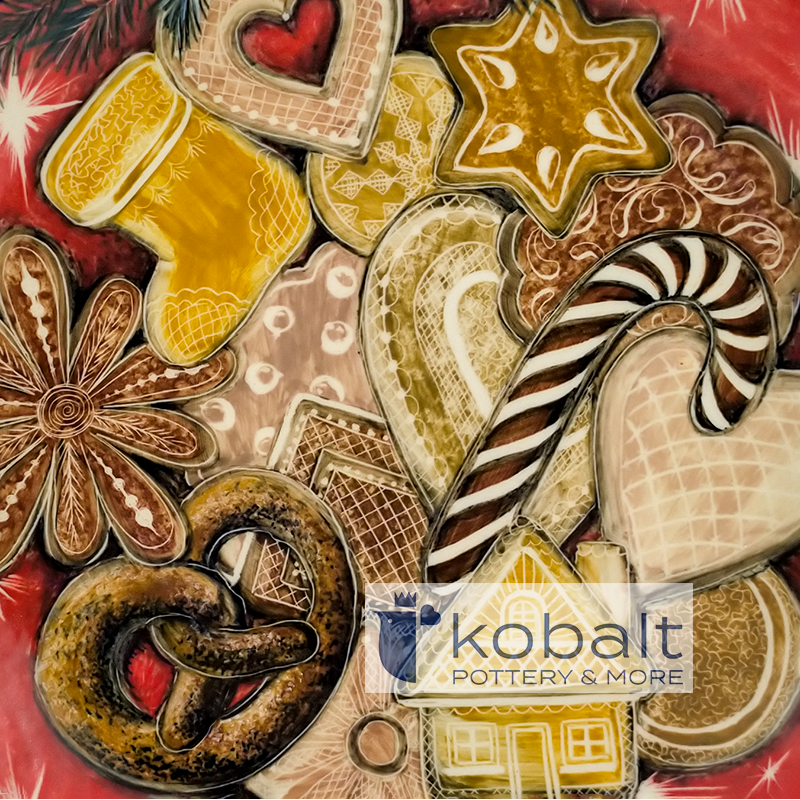 Talerz przedstawia świąteczne łakocie- pięknie zdobione pierniki i laskę cukrową, podkreślone są one czerwonym tłem. Niezwykła precyzja z jaką został wykonany produkt sprawia, że przypomina on prawdziwy obraz. Z pewnością talerz będzie stanowił oryginalną i piękną ozdobę każdego wnętrza.