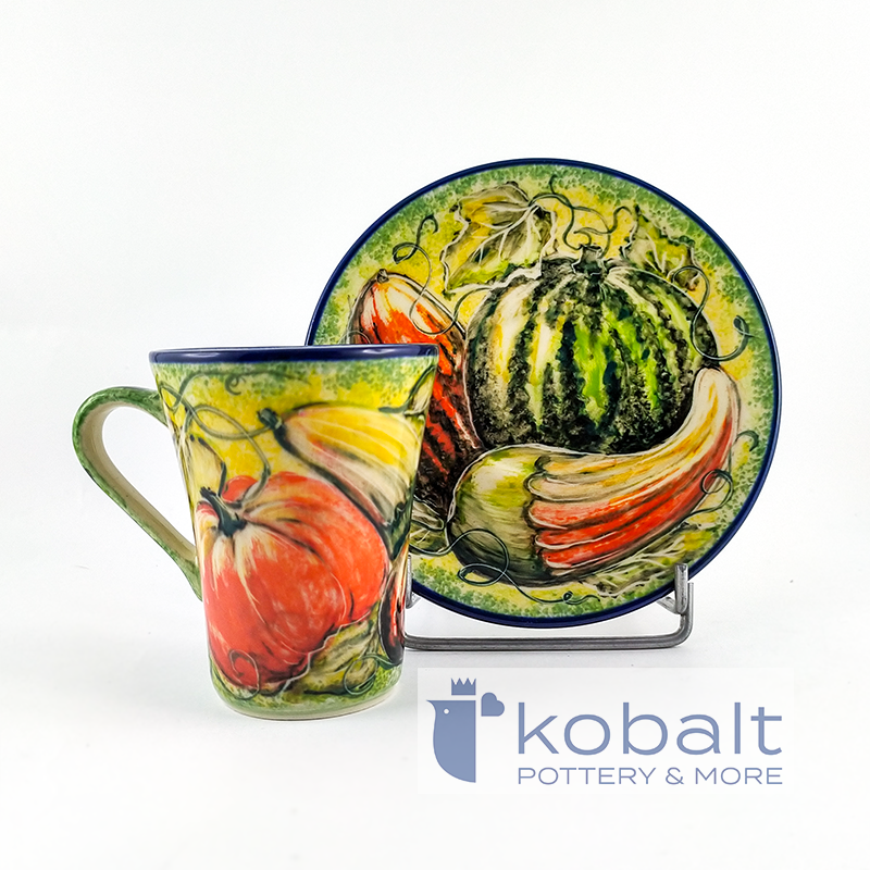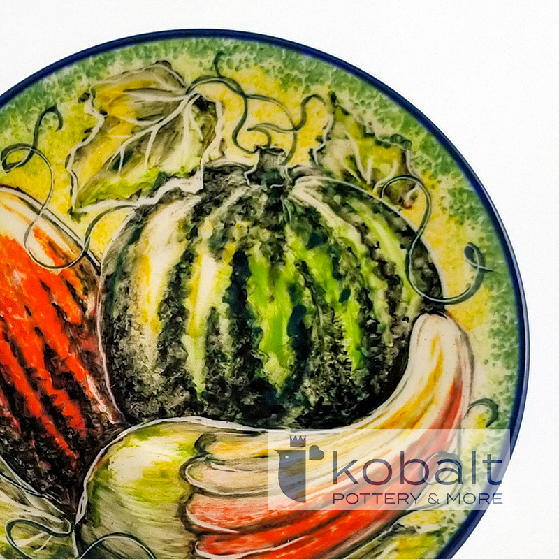 Zestaw przedstawia pomarańczowe dynie w pięknych, intensywnych kolorach. Cudowne, żywe barwy tworzą bardzo spójne połączenie i są prawdziwą ucztą dla oczu. Niezwykła precyzja z jaką został wykonany produkt sprawia, że przypomina on prawdziwy obraz. Z pewnością talerz będzie stanowił oryginalną i piękną ozdobę każdego wnętrza.