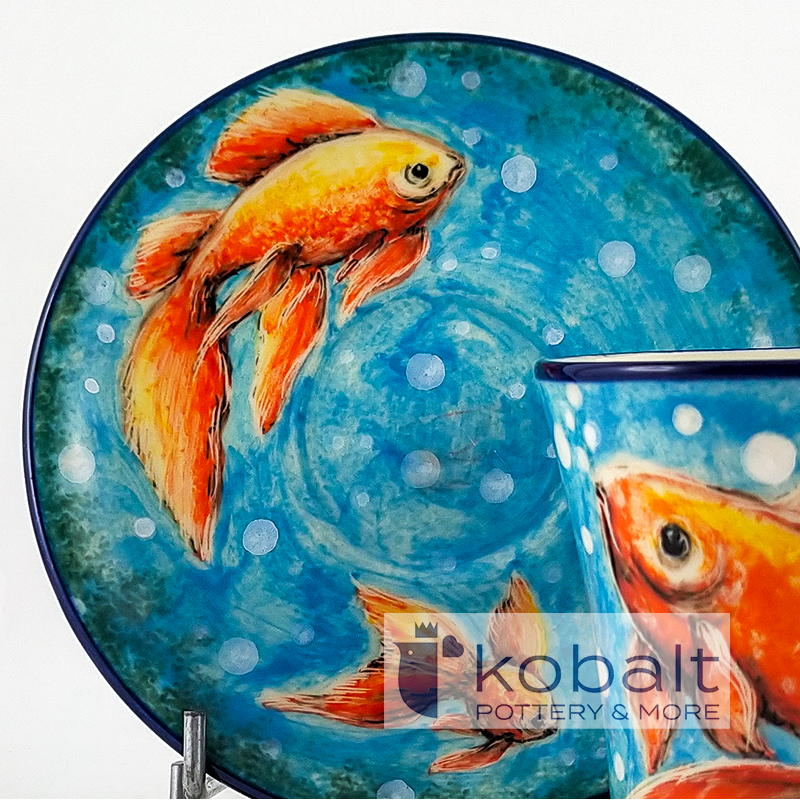 Na zestawie pięknie prezentują się złote rybki, które idealnie kontrastują z błękitem wody. Złota rybka jest symbolem szczęścia i obfitości. Wierzymy, że spełnia ona życzenia, dlatego jest często trzymana w domu jako talizman szczęścia. Jest także przypomnieniem, że szczęście może być zawsze w zasięgu ręki, pod warunkiem, że wierzymy w jego możliwość.