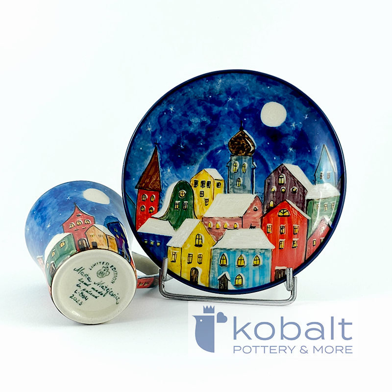 Powyższa filiżanka wraz ze spodkiem pochodzi z najnowszej edycji limitowanej z Ceramiki Artystycznej. Jest to prawdziwa perełka dla kolekcjonerów, ponieważ powstał tylko jeden taki egzemplarz. Zestaw został wykonany przez znaną bolesławiecką artystkę - Martę Matejewicz. Doskonałe połączenie piękna ceramiki bolesławieckiej z użytecznością jest możliwe wtedy, gdy produkt ma wysoką jakość wykonania.