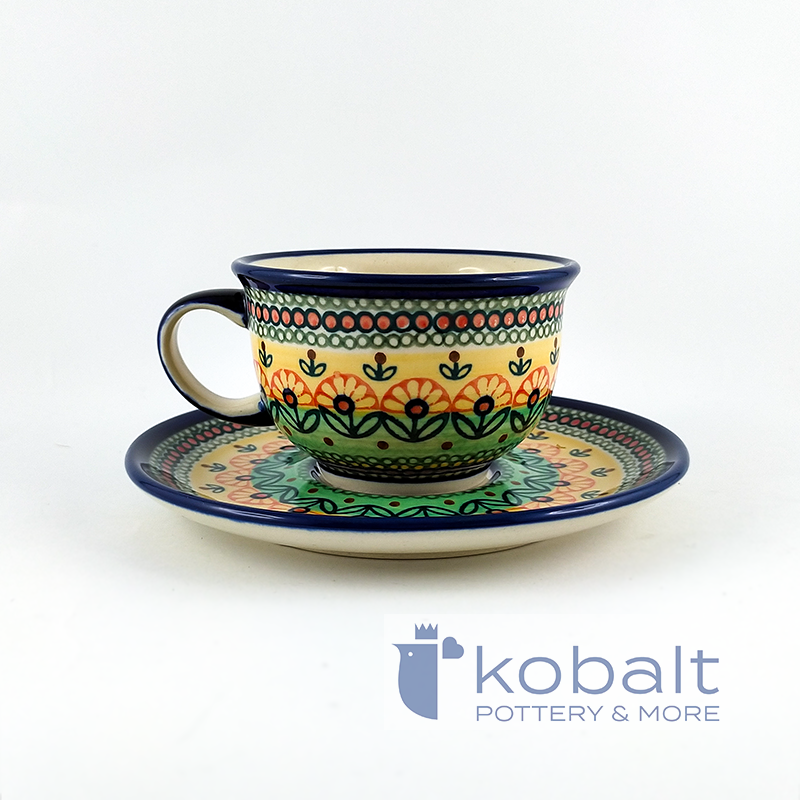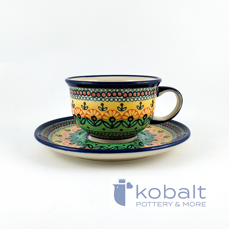 Filiżanka ze spodkiem w letnim wzorze o pojemności 220 ml