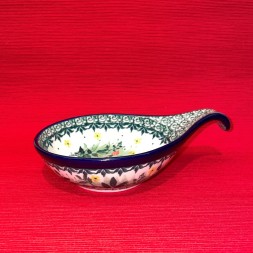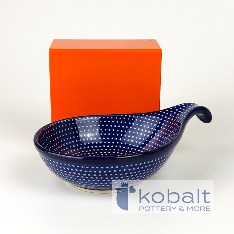 Kokilka w eleganckim unikatowym wzorze, zdobiona w piękne, ręcznie malowane, granatowe kropeczki. Produkt może służyć jako forma do zapiekania, sprawdzi się przy wypieku sufletów i mini tart, idealnie nada się także na sos czy jako podstawka pod łyżkę. Ten unikatowy wzór będzie się pięknie komponować zarówno w rustykalnych jak i minimalistycznych, nowoczesnych wnętrzach. Kokilka będzie stanowiła oryginalną ozdobę każdej kuchni.