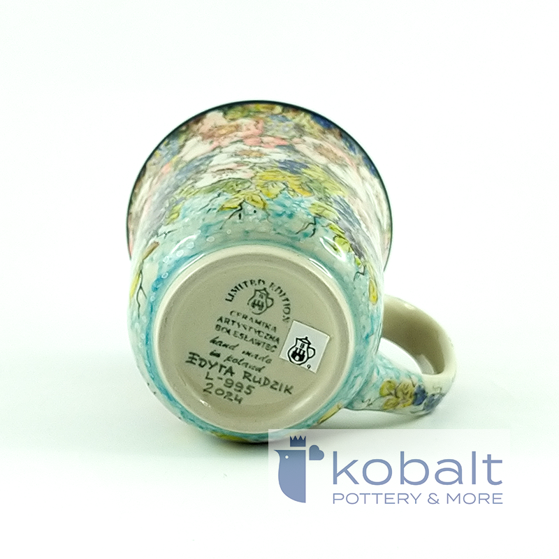 Powyższy kubek pochodzi z najnowszej edycji limitowanej z Ceramiki Artystycznej z 2024 roku. Jest to prawdziwa perełka dla kolekcjonerów, ponieważ powstał tylko jeden taki egzemplarz. Został wykonany przez znaną bolesławiecką artystkę – Edytę Rudzik. Doskonałe połączenie piękna ceramiki bolesławieckiej z użytecznością jest możliwe wtedy, gdy produkt ma wysoką jakość wykonania.