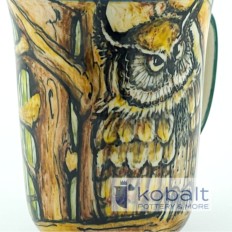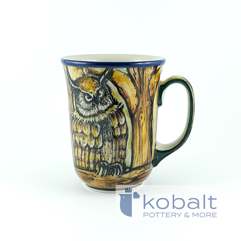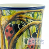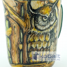 Kubek z jednej strony przedstawia dostojną sowę siedzącą na gałęzi drzewa i spoglądającą dumnie przed siebie, z drugiej strony natomiast widać dwie czerwone biedronki wspinające się na również na gałąź. Tło dla leśnych mieszkańców tworzą przebijające się zza drzewa zielone rośliny. Cudowne barwy tworzą idealne połączenie i są prawdziwą ucztą dla oczu. Niezwykła precyzja z jaką został wykonany produkt sprawia, że przypomina on prawdziwy obraz. Z pewnością kubek będzie stanowił oryginalną i piękną ozdobę każdego wnętrza.