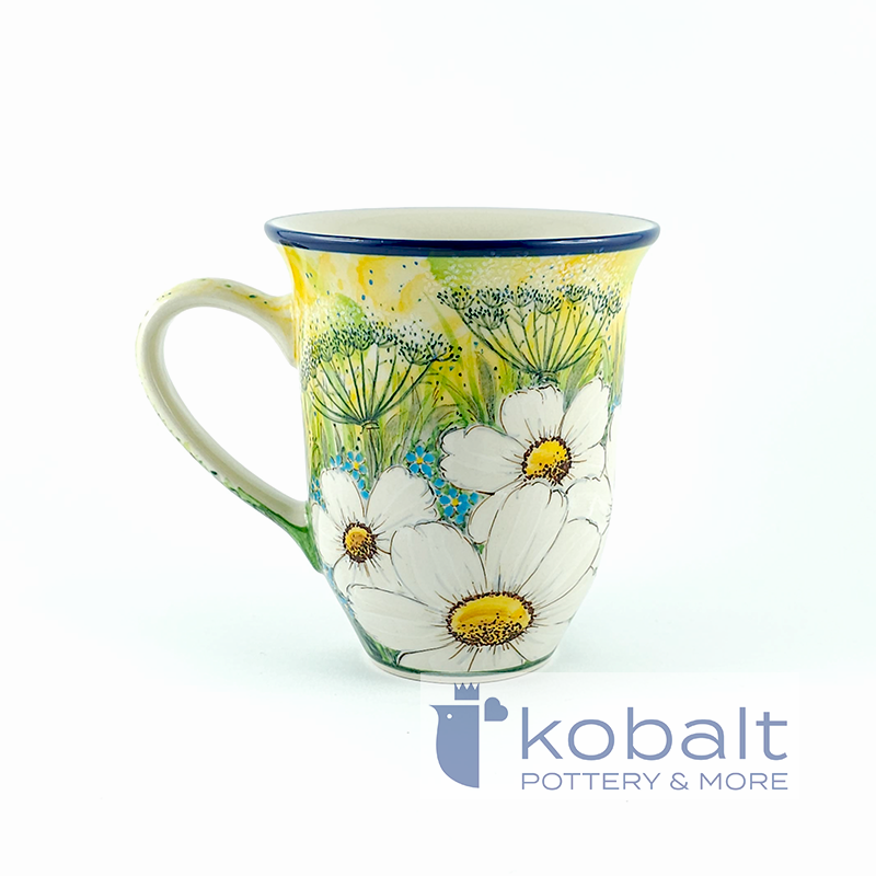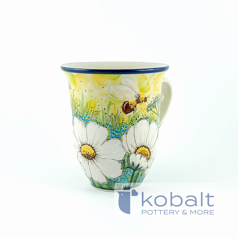 Kubek przedstawia scenę wyjętą wprost z polskiej łąki. Na produkcie widać drobną pszczołę w otoczeniu dużych, białych kwiatów i zwiewnych dmuchawców. Tło tworzą bujne, zielone rośliny, nad którymi rozlega się słoneczne tło. Delikatne, pastelowe kolory idealnie ze sobą współgrają i są prawdziwą ucztą dla oczu. Niezwykła precyzja z jaką został wykonany kubek sprawia, że przypomina on prawdziwy obraz. Z pewnością produkt będzie stanowił oryginalną i piękną ozdobę każdego wnętrza.