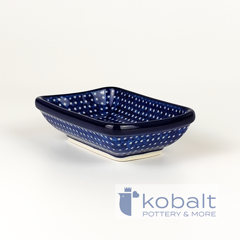 Miseczka do sushi zdobiona w piękne, ręcznie malowane, granatowe kropeczki. Miseczka idealnie sprawdzi się do podania sosu sojowego. Ten unikatowy wzór będzie się pięknie komponować zarówno w rustykalnych jak i minimalistycznych, nowoczesnych wnętrzach. Miseczka będzie stanowiła oryginalną ozdobę każdej kuchni.