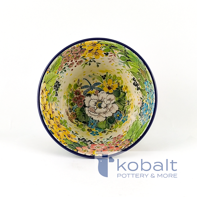 Miska przedstawia różnego rodzaju kwiaty w przepięknych, pastelowych kolorach. Na dnie produktu dostrzec można również niewielką, niebieską ważkę. Cudowne barwy tworzą bardzo spójne połączenie i są prawdziwą ucztą dla oczu. Niezwykła precyzja z jaką został wykonany produkt sprawia, że przypomina on prawdziwy obraz. Z pewnością miska będzie stanowiła oryginalną i piękną ozdobę każdego wnętrza.