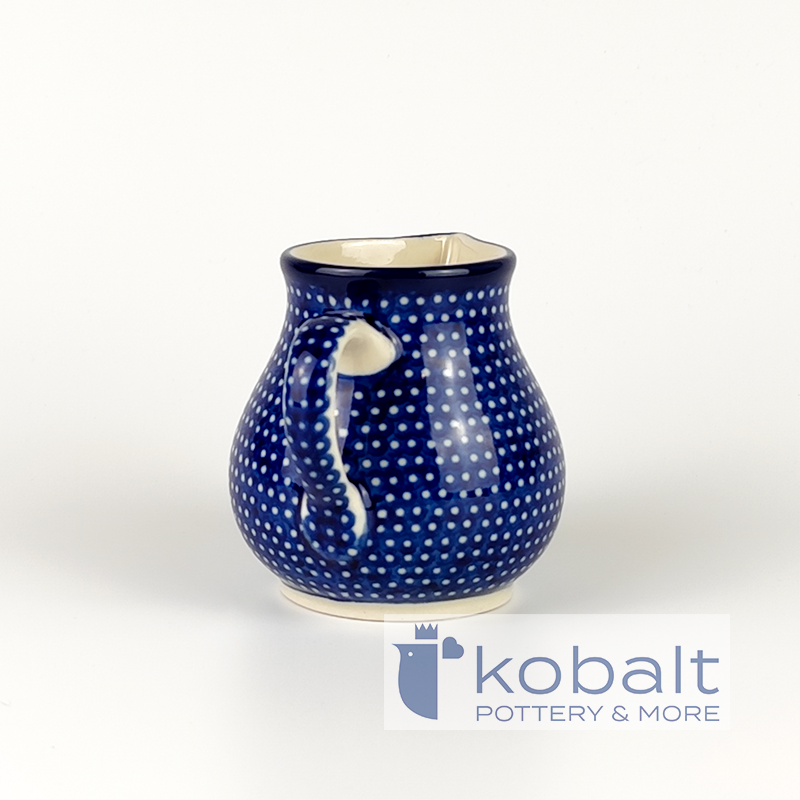 Mlecznik o pojemności 200 ml zdobiony w piękne, ręcznie malowane, granatowe kropeczki. Mlecznik idealnie sprawdzi się do podania mleka do kawy. Ten unikatowy wzór będzie się pięknie komponować zarówno w rustykalnych jak i minimalistycznych, nowoczesnych wnętrzach. Mlecznik będzie stanowił oryginalną ozdobę każdej zastawy.