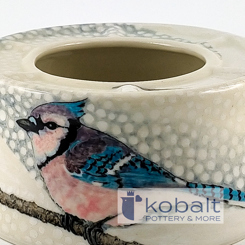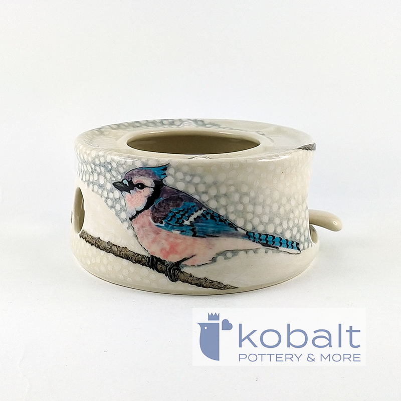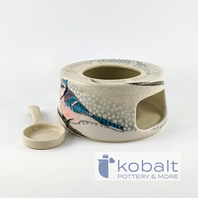 Podgrzewacz przedstawia scenerię wprost z zimowego lasu. Widać na nim piękną modrosójkę błękitną, spoczywającą na gałęzi. Upierzenie ptaka w odcieniach niebieskiego idealnie komponuje się z zimową aurą stanowiącą dla niego tło. Cudowne, chłodne barwy tworzą bardzo spójne połączenie i są prawdziwą ucztą dla oczu. Niezwykła precyzja z jaką został wykonany produkt sprawia, że przypomina on prawdziwy obraz. Z pewnością podgrzewacz będzie stanowił oryginalną i piękną ozdobę każdego wnętrza.