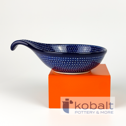 Podstawka o kształcie serca, zdobiona w piękne, ręcznie malowane, granatowe kropeczki. Ten unikatowy wzór będzie się pięknie komponować zarówno w rustykalnych jak i minimalistycznych, nowoczesnych wnętrzach. Podstawka będzie stanowiła oryginalną ozdobę każdej kuchni.
