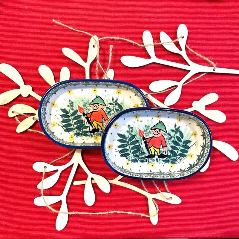 Unikatowa dekoracja autorstwa Marii Starzyk przedstawia skrzata w otoczeniu zieleni. Precyzja detali i dokładność wykonania sprawia, że ceramika prezentuje się pięknie nawet w charakterze ozdoby.