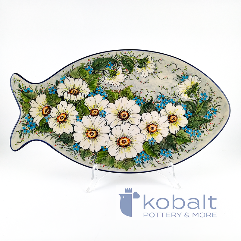Powyższy półmisek w kształcie ryby pochodzi z najnowszej edycji limitowanej z Ceramiki Artystycznej. Jest to prawdziwa perełka dla kolekcjonerów, ponieważ powstał tylko jeden taki egzemplarz. Został wykonany przez znaną bolesławiecką artystkę – Krystynę Deptułę. Doskonałe połączenie piękna ceramiki bolesławieckiej z użytecznością jest możliwe wtedy, gdy produkt ma wysoką jakość wykonania.
