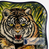 Talerz przedstawia gęste, kolorowe zarośla spośród których wyłania się ich mieszkaniec. Groźny tygrys kieruje swoje skupione spojrzenie prosto na nas. Niezwykła precyzja z jaką został wykonany produkt oraz wykorzystane ciepłe barwy sprawiają, że przypomina on prawdziwy obraz. Z pewnością talerz będzie stanowił oryginalną i piękną ozdobę każdego wnętrza.